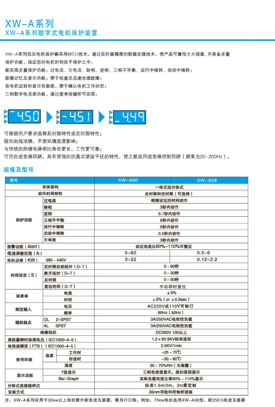 XW-A系列數(shù)字式電機(jī)保護(hù)裝置