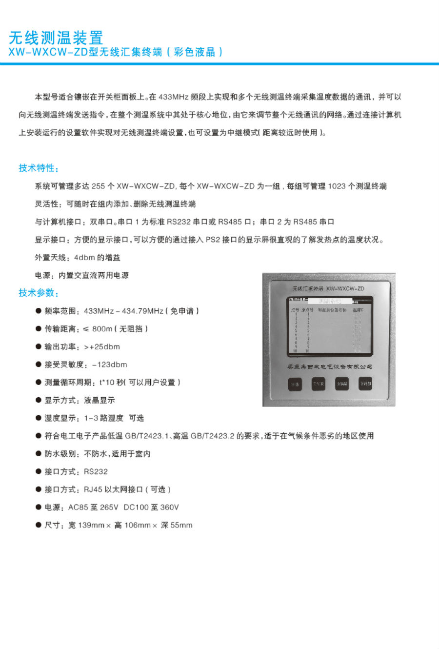 無(wú)線測(cè)溫匯集終端XW-WXCW-ZD