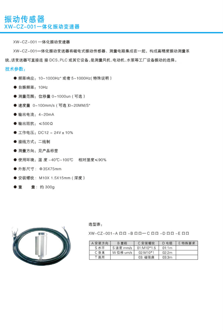 振動(dòng)傳感器振動(dòng)一體化變速器XW-CZ-001